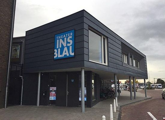 De huidige locatie opende in september 2012. Tot die tijd was Theater ins Blau gevestigd aan de Leidse Rijnsburgerweg in een voormalig asielzoekerscentrum . Vanwege de komende sloop van dat gebouw, in combinatie met de sluiting van het LAKtheater, bleek de gemeente Leiden bereid de nieuwe ruimte als casco beschikbaar te stellen, waarna de 'Stichting Ins Blau' zorgde voor de verdere invulling als theater. De stoelen zijn door Herman Hertzberger ontworpen voor theater Markant in Uden, waar ze na een verbouwing beschikbaar kwamen voor Ins Blau. Naast de theaterzaal is er een drietal repetitiestudio's.