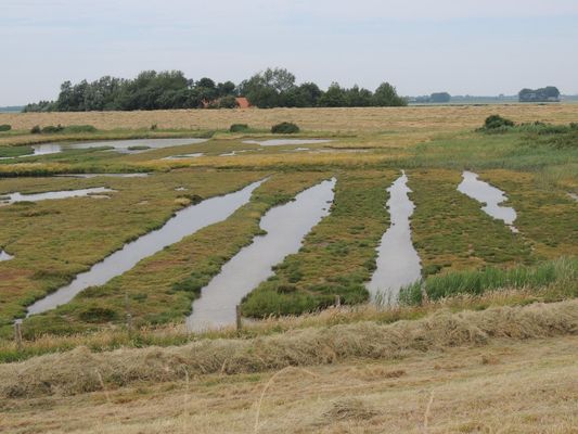 De grond om de inlaagdijken mee te maken werd uit de inlaag zelf of uit de direct omgeving afgegraven en uitgekard. Deze karrevelden zijn nu nog te herkennen aan lange stroken grond (om met de karren overheen te rijden) afgewisseld met lange uitgegraven stroken.