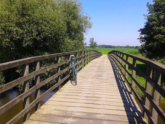 Fietsbrug over de rivier de Roer nabij Paarlo.