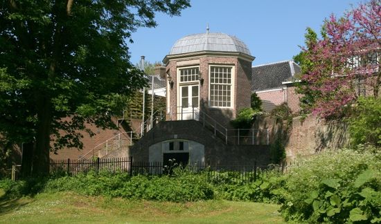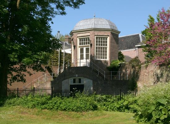 Dit op een oude vestingtoren gebouwde theekoepeltje dateert van kort na 1760. De achtkantige vorm en het koepeldak van dit stenen tuinhuis zijn karakteristiek voor die tijd. Terwijl de heren op jacht waren dronken de dames er hun kopje thee, natuurlijk binnen om hun huid mooi wit te houden; dat was immers de mode.