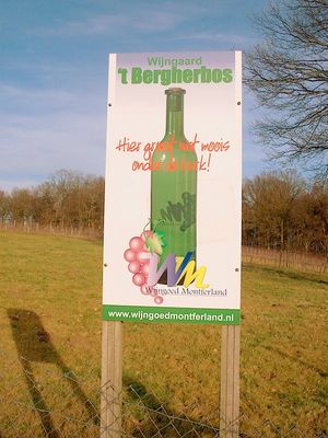 Iets wat men misschien niet verwacht, maar hier in het Montferland komen steeds meer wijngaarden voor de productie van Nederlandse wijnen. Ook hier, vlak bij kasteel Huis Bergh worden druiven verbouwd.