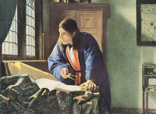 a In welke stad hangt het schilderij de Geograaf ?