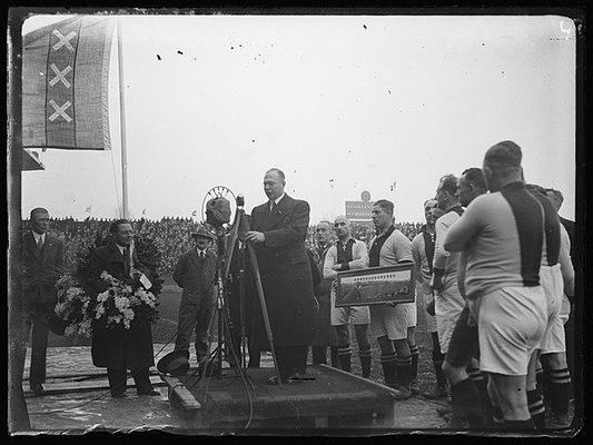 De reden voor de verhuizing vanaf Het Houten Stadion, dat zich ongeveer bevond op de plek van het huidige Christiaan Huygensplein, waren de successen van Ajax en druk van buitenaf. De gemeente Watergraafsmeer was in 1921 door de gemeente Amsterdam geannexeerd en grotendeels bestemd voor de bouw van nieuwe woonwijken. De toeschouwersaantallen waren te hoog voor het oude stadion en ook de onderhoudskosten namen toe. In eerste instantie liet de club haar oog vallen op een circa 12 hectare groot terrein aan de Radioweg, niet ver van het Houten Stadion. De voetbalverenigingen die daar al speelden weigerden echter mee te werken. Vervolgens werd gekozen voor het iets verder weg gelegen terrein van de voormalige hoeve Voorland, tegenover Betondorp. Dat terrein was 5,67 hectare groot. De eerste paal werd door Ajax-voorzitter Marius Koolhaas geslagen op 21 april 1934. Het stadion werd officieel in gebruik genomen op 9 december 1934 met een vriendschappelijke wedstrijd tegen het Franse Stade Français. Ajax won deze wedstrijd met 5-1. Het eerste doelpunt in het stadion werd gemaakt door Ajacied Bob ten Have.