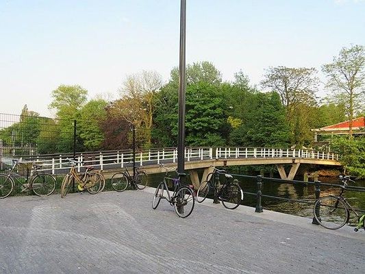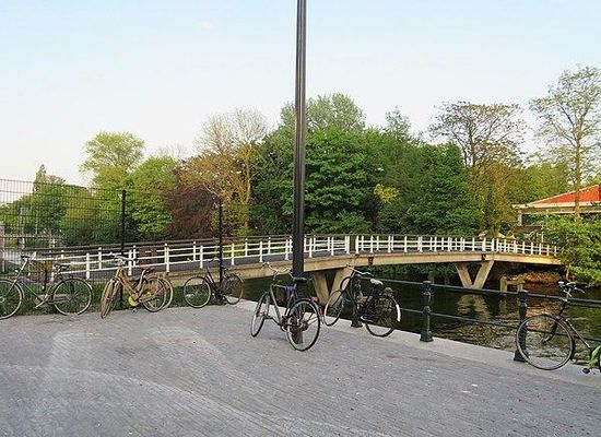 De brug verbindt de Tolhuistuin met de Badhuiskade, tot 2003 het domein van Koninklijke Shell. Ze overspant daarbij het Buiksloterkanaal. In de periode 1972 tot 1975 werd hier een voetgangersbrug aangelegd met aan de ene kant van het kanaal de Shell-kantine en de toegangspoort tot de tuin en aan de andere kant voerend naar het oude Groot Laboratorium van Shell. De brug werd door Shell zelf bekostigd en in ontworpen door Arthur Staal, die zowel de kantine als ook de Shelltoren ontwierp.