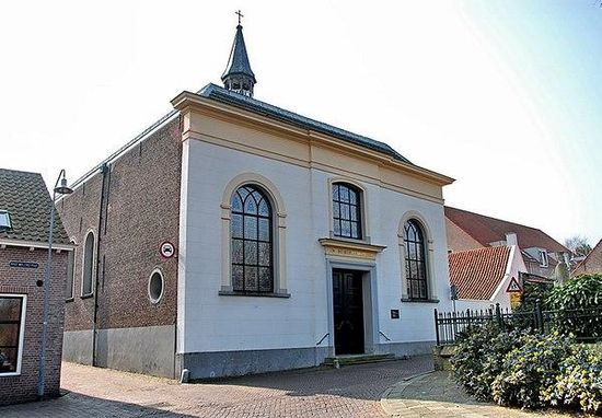 De kerk werd in 1768 gebouwd en diende aanvankelijk als schuurkerk. In 1842 werd het gebouw uitgebreid en voorzien van een gevel in neoclassicistische stijl om het meer op een kerkgebouw te laten lijken. In 1931 werd er een dakruiter toegevoegd met daarin een luidklok. In 1993 is de kerk gerestaureerd. Het is een rijksmonument.