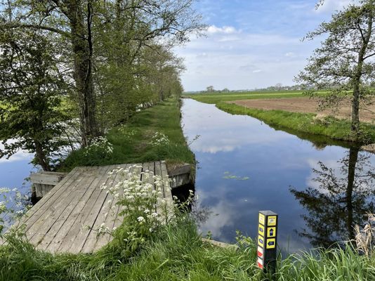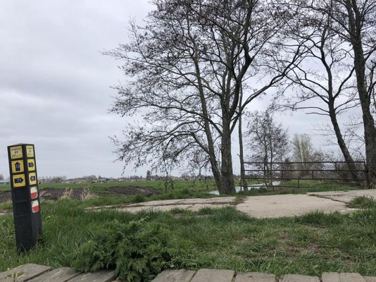 Vanaf dit wandelknooppunt langs de Tiendweg bij Oudewater kan er door het weiland gewandeld worden naar de Hoenkoopse Buurtweg. Tijdens het broedseizoen 15 maart - 15 juni is dit pad gesloten.