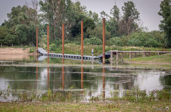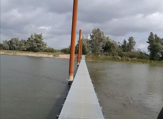 In de Heesseltse uiterwaarden zijn nevengeul (strang) gegraven. Daarover ligt een drijvende brug zodat de wandelroute ook begaanbaar blijft als het water nieuw in de strand stijgt.