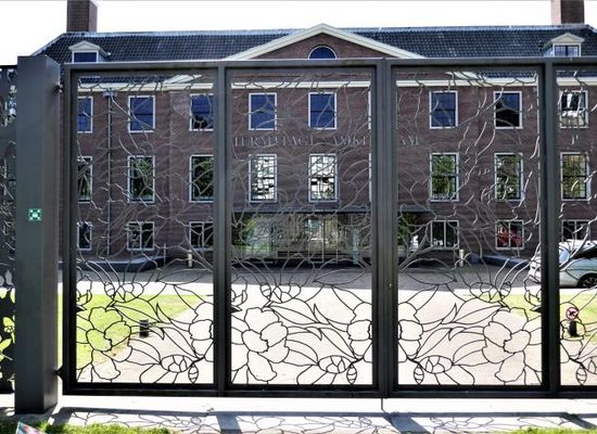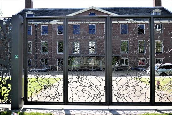 Het hekwerk met bladmotieven is van kunstenaar Michael van Gessel.
