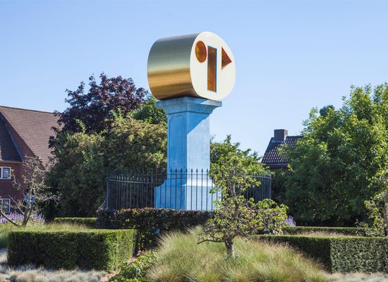 Midden op de rotonde staat de kroon op de Rijksweg, onthuld ter ere van de afronding ervan. De vier meter hoge zuil verwijst naar klassieke oorlogsmonumenten.