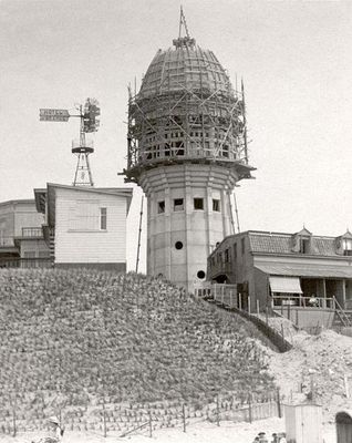 In 1912 kreeg Zandvoort aansluiting op het waterleidingnetwerk van Haarlem. De bouw van de watertoren was nodig om de toenmalige hoge gebouwen en hotels te voorzien van voldoende waterdruk. Op 24 september 1912 vond de aanbesteding plaats. De gemeenteraad was akkoord gegaan met een begroting van 45.200 gulden voor een watertoren met uitzichtmogelijkheid. Het werk werd opgedragen aan de "Hollandse Maatschappij tot het maken van werken in gewapend beton". Als locatie koos men het hoogste punt van het dorp, daar waar ooit de vuurtoren had gestaan. De toren werd bijna volledig opgetrokken uit beton. De wenteltrap, ook in beton, had 120 treden en er waren 3 rustplaatsen. De toren werd voltooid op l juni 1913. In 1937 werd de toren door de Turmac-sigarettenfabriek voorzien van een uurwerk. 30 jaar na de voltooiing, op 17 september 1943, werd de watertoren met 12 dynamietladingen opgeblazen door het Duitse leger. Het duurde drie maanden om het puin op te ruimen.
