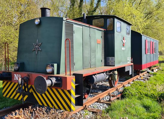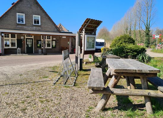 Er zijn picknicktafels beschikbaar en nabij is een locomotief te spotten.