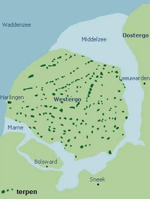 Op de kwelderwallen langs de oude kustlijn van de Waddenzee werden op grote schaal terpen (vluchtheuvels) opgeworpen en ontstonden terpenrijen.