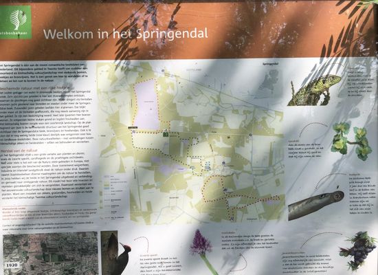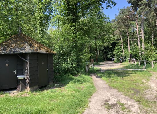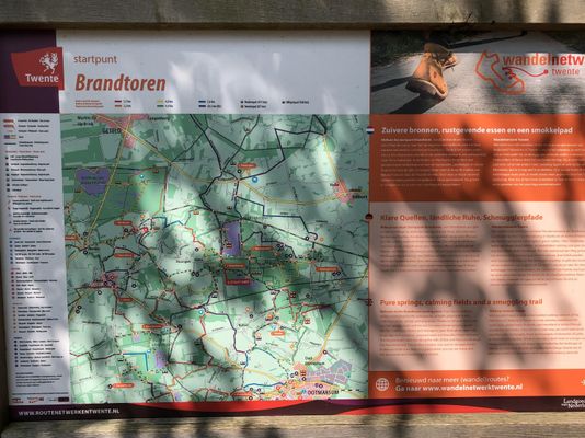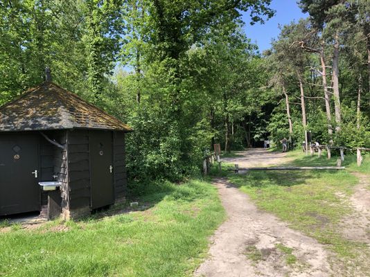 Startpunt wandelroutes aan Brandtorenweg. Bij de parkeerplaats is ook een hutje met wasbak en toiletten.