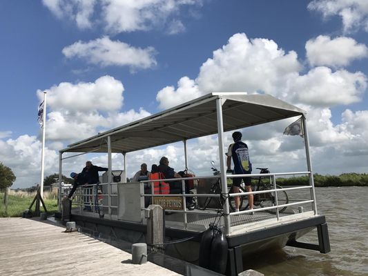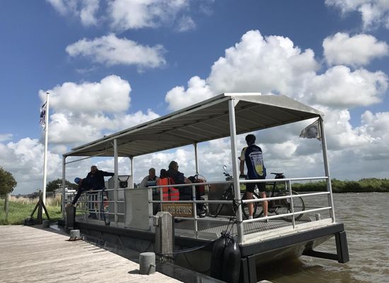 In de zomermaanden kun je het Van Harinxmakanaal oversteken met deze fietspont.