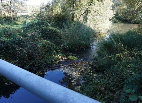 Op de brug kan je mooi een paar treden zien van de vistrap, die hier in 1996 in de Beerze is geplaatst. De wereld van de snoek, kopvoorn, stekelbaars en modderkruiper is er zo weer een heel stuk groter geworden.