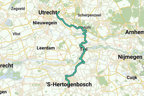 Vanuit Den Bosch, via Tiel, 91 km
