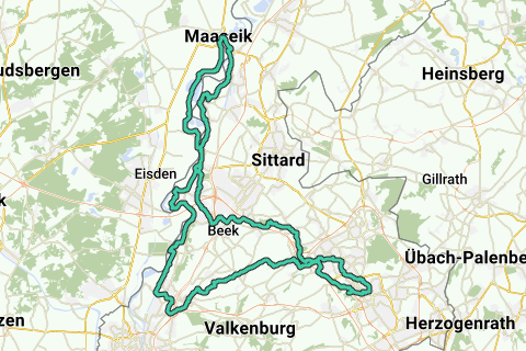 Fietstoer door Zuid-Limburg bestaande uit 2 lussen. Een korte lus naar het zuiden en 1 langere naar het noorden naar Maaseik.