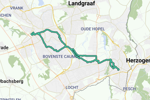 Recreatieve route vanaf het Old Hickoryplein in Kerkrade naar de stadsschouwburg in Heerlen en retour.