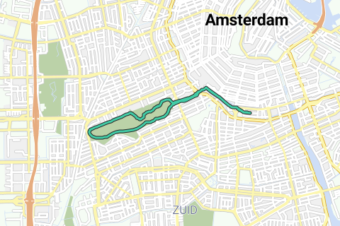 Korte hardlooproute die vanuit de Texstraat naar het Vondelpark gaat en er helemaal rondom loopt.