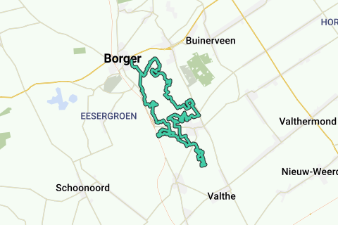 Gepijlde route Exloo 38km + 1km aanloop + 1km uitloop.