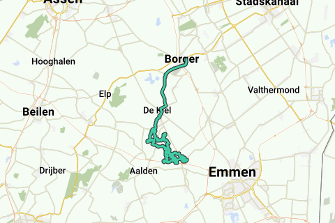MTB route gepijld Sleen 32km met aanloop 12km en uitloop 12km.