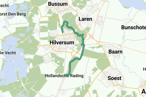 Lijnwandeling: start bij NS-station Hilversum Mediapark, eindpunt NS-station Hollandsche Rading.