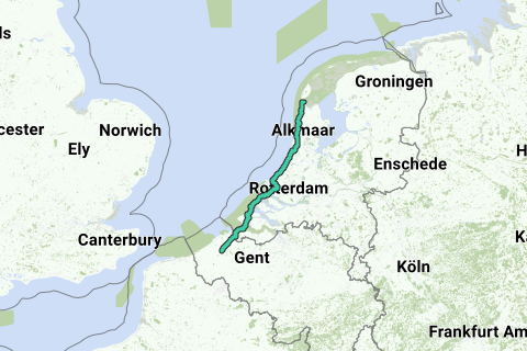LF1a Noordzeeroute gerouteerd en geverifieerd op recente luchtfoto's en verrijkt met POIs langs de route.