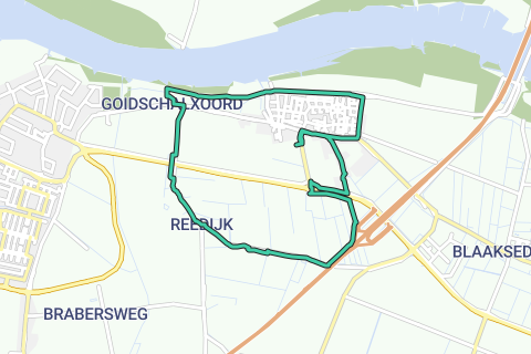 Start vanaf de voetbalkantine; Tienvoet linksaf, Dorpstraat rechtsaf, Molenweg linksaf, Schapendijk linksaf, na PKF pad linksaf, Goidschalxoordsedijk linksaf, Westdijk rechtsaf, Westdijk rechtsaf (onder viaduct door), Westdijk rechtsaf vervolgen, rechtdoor Reedijk, rechtdoor Oud-Heinenoordseweg (bocht naar links), rotonde rechtdoor Tienvoet, Provincialeweg rechtsaf, Oud-Heinenoordseweg linksaf, Dorpstraat linksaf, Tienvoet linksaf, rechtsaf naar de voetbalkantine.