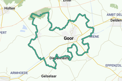 Vanuit Diepenheim rijd je (heel ruim) rondom Goor: je komt langs de kastelen Nijenhuis, Weldam en Westerflier en op het laatst rijd je nog een ommetje om ook huis Diepenheim te zien.