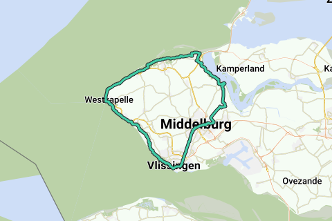 Van Remijn Arnesteinweg 9 4338 PD Middelburg, NL langs de kusten via oa Vlissingen, Zoutelande, Westkapelle, Domburg, Vrouwenpolder en Veere terug naar Middelburg