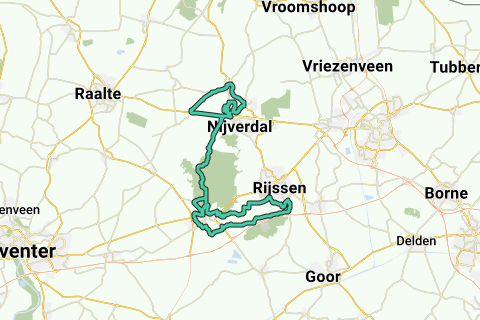 Trainingsrondje voor op de racefiets met aardig wat hoogtemeters. Gaat vanaf de parkeerplaats NKC in Nijverdal via het Doktersbos naar het villapark in Nijverdal waar 2 rondes gereden worden. Daarna via de touristenweg naar Holten om vervolgens over de Beuseberg richting Schwarzwald in Rijssen te gaan (langs de A1). Vanuit Schwarzwald weer richting Holten om via het fietspad langs het station weer richting de touristenweg te gaan. Daarna wederom afdalen richting Holten om vervolgens de Motieweg en de Diepe Hel te fietsen richting Nijverdal. Tot slot nog even de klim vanaf de Tunnelweg naar Hellendoorn om vervolgens weer via Hellendoorn bij de NKC in Nijverdal te eindigen.
