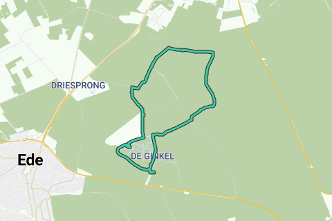 Start op het parkeerterrein van het Natuurcentrum Veluwe, Grootginkelseweg 2a Ede. Steek de toegangsweg over naar een hoog klaphek. Ga hier door naar de heide en ga RA. Langs het hek en bij de hoek linksaf, langs de rand van de heide. Even verder over de brede zandweg. Passeer de. Op de Y-splitsing rechts aanhouden en op de kruising RA. Hier volg je het betonnen fietspad. Neem het plankenpad RA naar de Kreelse Plas.Voor de plas het plankenpad naar links volgen. Op driesprong van plankenpaden links. Aan het eind LA. Je komt uit op een brede bosweg met fietspad. Sla hier RA.