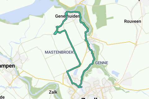 Via hasselt naar Genemuiden. Stukje kamperzeedijk, daarna richting Stadshagen terug naar Zwolle