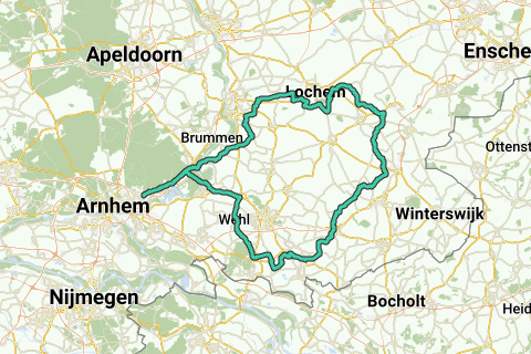 VAnuit Velp via Montferland door de weilanden naar Zwiep waar de Witte wieven met een pannekoek op je wachten. Daarna binnendoor richting de IJssel, langs Zutphen om als laatste de pont bij Dieren over de IJssel te nemen. Via Ellecom en de Steeg terug.