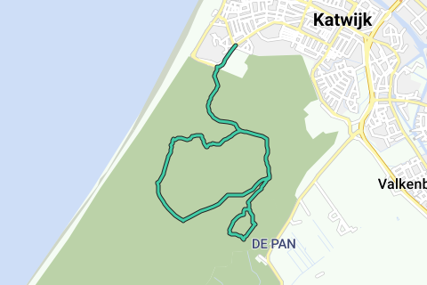 Startpunt bij TOP Katwijk door de Zuidduinen en het Panbos.
