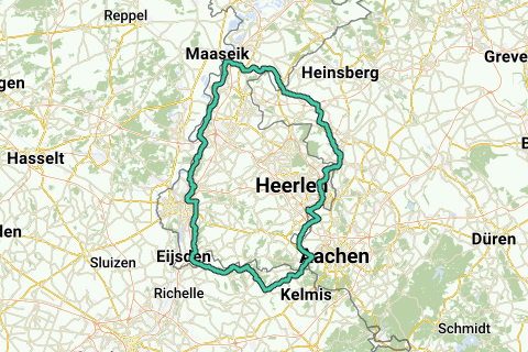 S.G.V. – Mesch – Mariadorp – Rijckholt – Gronsveld – Vroendaal – Heer – Amby – Mariënwaard – Rothem – Bunde – Voulwames – Geulle aan de Maas – Meers – Urmond – Berg aan de Maas – Nattenhoven – Obbicht – Papenhoven – Schipperskerk – Illikhoven – Roosteren – Dieteren – Susteren – Koningsbosch – Saeffelen – Breberen – Langbroich – Schierwaldenrath – Kreuzrath – Stahe – Niederbusch – Bocket – Teveren – Windhausen – Zweibrüggen – Rimburg – Eygelshoven – Kerkrade – Locht – Horbach – Bocholtz – Orsbach – Lemiers – Vaals – Gemmenich – RAVEL 39 – Plombières – Hombourg – Teuven – De Plank – S.M.V. – S.G.V.