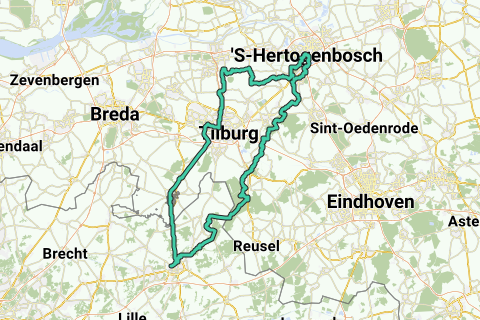 Natuurroute vanuit Turnhout langs het Bels Lijntje naar Baarle-Hertog-Nassau en Tilburg, door de Loonse en Drunense Duinen naar 's-Hertogenbosch. Door natuurgebieden Jagershagen, De Kampina, het Groene Woud en de Oisterwijkse bossen en vennen naar Hilvarenbeek. Doorheen Landgoed De Utrecht en de Gewestbossen van Ravels weer naar Turnhout.