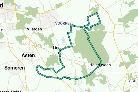 Daarna gaat de route naar Griendtsveen, door het prachtige hoogveengebied tussen Griendtsveen en Helenaveen, naar Neerkant en eindigt wederom in Heusden. Op de route liggen nauwelijks fietspaden, alleen een halve kilometer in Helenaveen, en de laatste 4 km naar Heusden gaan over fietspad.