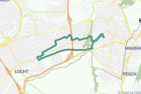 Vanuit het centrum langs de spoorlijn van het Miljoenenlijntje over het Wauwelpad naar het Plein in Kerkrade West.