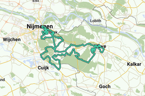 iets bijgewerkt. Stukje bij Riethorst fietspad genomen ipv zandpad, in Groesbeek is een stukje weg niet meer berijdbaar dus eruit gehaald.