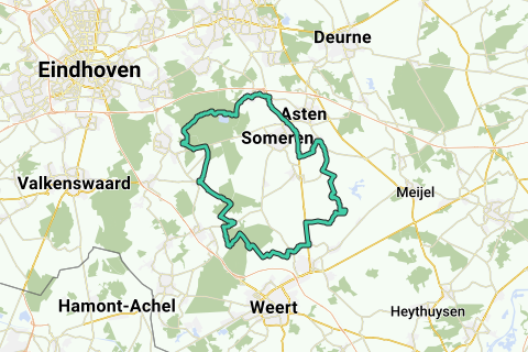 De route volg je tegen de wijzers van de klok in, nagenoeg 51% van de route gaat over nagenoeg allemaal gravelwegen. Na het verlaten van Heusden fiets je naar gehucht Behelp, waar de eerste gravelweg ligt (er ligt ook een smal geasfalteerd fietspad langs). Daarna fiets je over gravelweg langs het kanaal Zuid-Willemsvaart. Via dorp Lierop, fiets je richting de bossen en heide bij Someren: er volgt 8 kilometer gravelpaden over de Strabrechtse Heide en de Herbertusbossen. Daarna volgt een stukje fietspad langs doorgaande weg, overgaand in vrijliggend geasfalteerd fietspad. Het fietspad gaat over in gravelweg naar het dorp Sterksel. Buiten Sterksel volgt een gravelstrook langs natuurgebied de Vroolijke Jager.