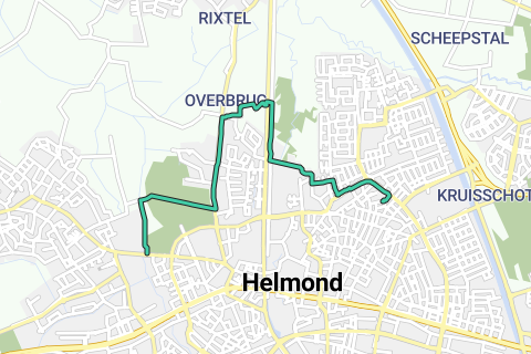 Sla voor de verkeerslichten RA de VINKENLAAN in en steek bij de verkeersregelaars LA de FAZANTSTRAAT in (RECHTS LOPEN), loop deze helemaal uit en sla aan het einde RA HELMONDSELAAN in.