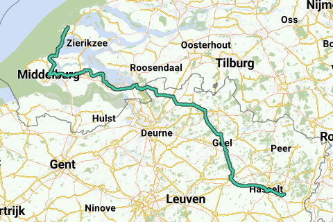 Renesse - Veere - Middelburg -Yerseke - Kalmthout - Turnhout - Geel - Laakdal -Diest - Hasselt - Beverst