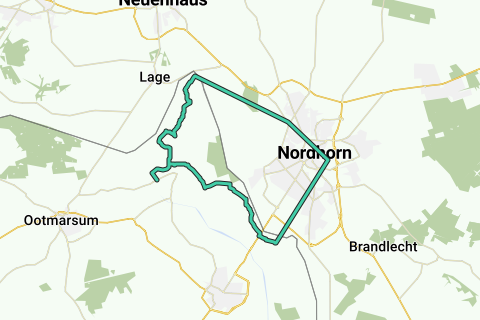 Bij Noord-Deurningen de grens over naar centrum Nordhorn. Via noordwestelijke richting weer naar de grens en terug naar Lattrop