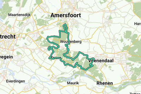 Vanuit vakantiepark Het Grote Bos, fiets je langs zandverstuivingen, en vervolgens langs het Maarnse Gat. De route gaat naar dorp Austerlitz en over de vele gravelfietspaden door Landgoed Den Treek. Via een gravelweg langs de Woudenbergse Grift, fiets je richting Maarsbergen. Je gaat door de Landgoed Maarsbergen en beklimt de Ruiterberg, en daarna volg je het Let de Stigterpad (een begrip onder gravelaars op de Utrechtse Heuvelrug). Vervolgens ga je gravelend door het Leersumse Veld (heidegebied). Via deels gravelfietspaden in de buurt van Veenendaal, ondermeer langs het Egelmeer, ga je terug richting Amerongen en dwars door Amerongen: je komt langs wielercafé De Proloog.