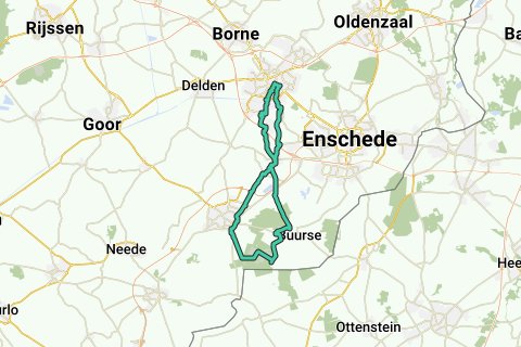 Route van Hengelo naar Buurserzand en Haaksbergerveen.