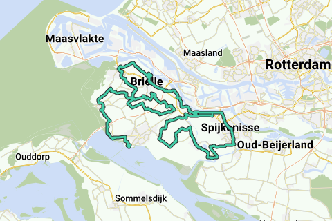 Het startpunt is bij McDonalds aan de Groene Kruisweg, tussen Spijkenisse en Geervliet. De route voert langs: Oudenhoorn, Zuidland, Spijkenisse (let op! drukte en een paar grote kruispunten), Geervliet, Heenvliet, Zwartewaal, Brielle (tussenstop in het oude vestingstadje), Oostvoorne, Tinte, Vierpolders, Rockanje en Hellevoetsluis (eindpunt, oude marine stad en leuke jachthaven).