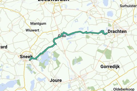 Route van Drachten naar Sneek