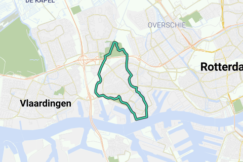 Route door sportpark Harga, Volkstuincomplex Vijfsluizen, Volkspark, Julianapark, Maasboulevard, Plantage (Oudste stadspark Nederland) Historisch Schiedam (Lange Haven), via Parkweg naar Beatrixpark en terug. Parkeren bij Sportcentrum.
