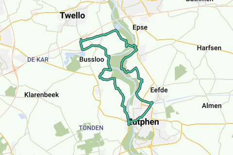 Knooppunten- en GPS route via Wilp,Zutpen langs en over de Ijssel, 17-27